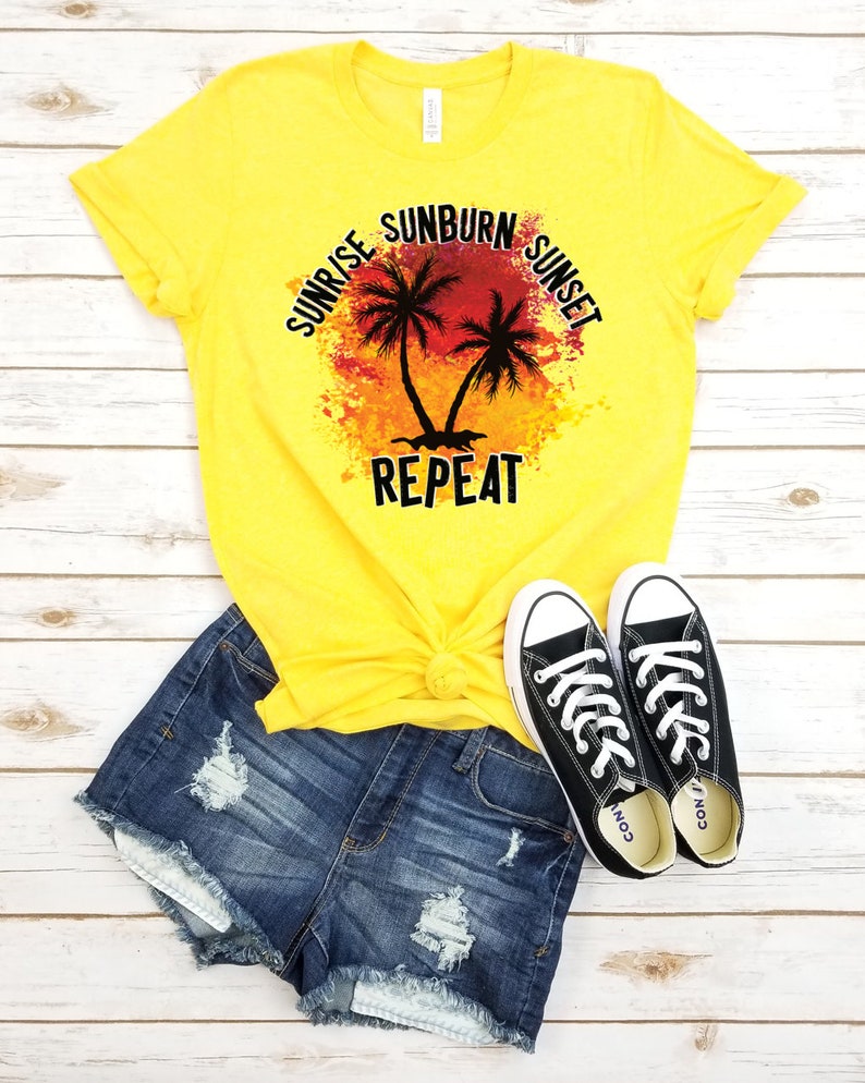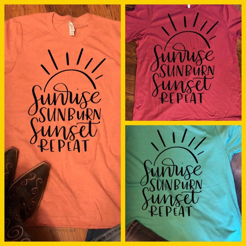 Sunrise Sunburn Sunset Repeat Shirt - Sunrise Sunburn Sunset Repeat Shirt Country Music Shirt | Etsy - verse 2 g i turned those shutters the color of your chorus g d c sunrise, sunburn, sunset, repeat g d c moonlight, all night, crashing into me em d/f# nothing will ever be easy as you and me.. Sign up for our email list at the bottom of this page and receive an instant coupon! These shirts are unisex and are true to size for a baggy fit but if you are wanting something more fitted, i suggest sizing down one size. Make a shirt transfer easily by printing onto iron on transfer paper that you. But there is a lot worse child abuse then sun no one wants their kids sunburnt but it happens easy. Sunrise sunburn sunset repeat shirt.